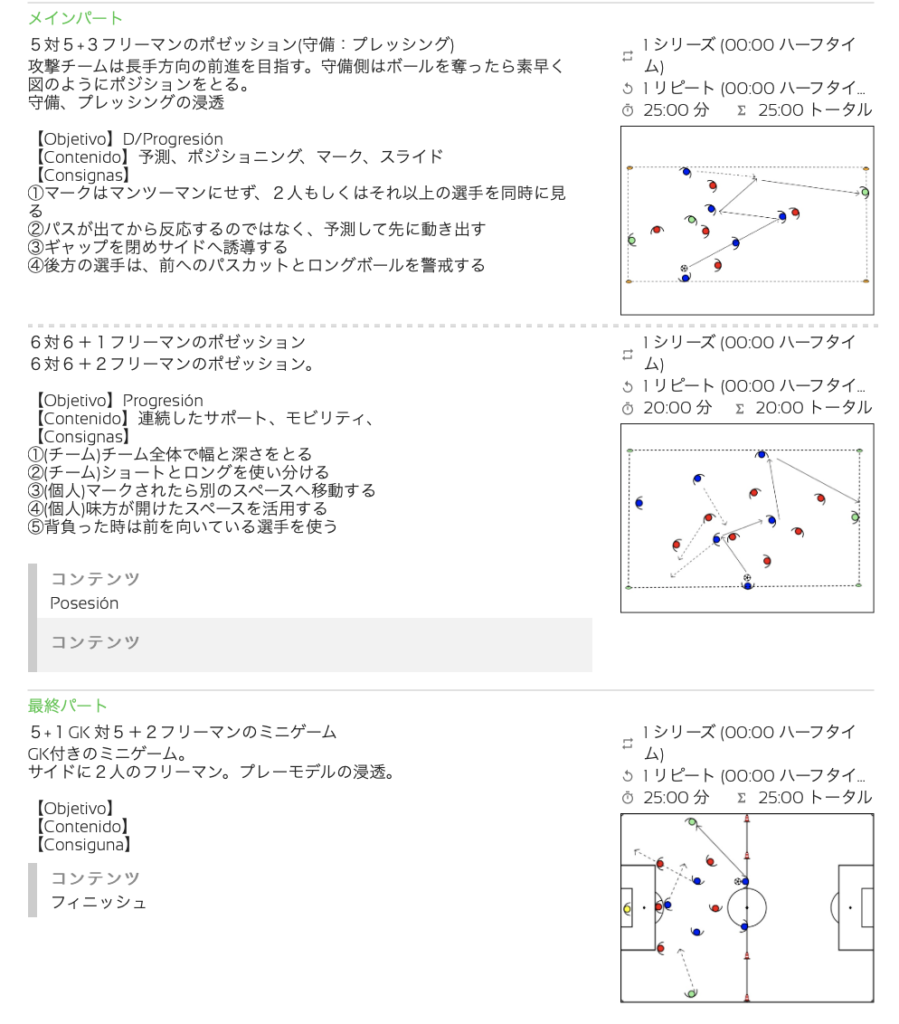 本日の練習メニュー
